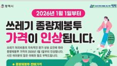 경기도 평택시는 내년부터 2028년까지 3년에 걸쳐 쓰레기 종량제봉투 가격을 매년 평균 8%씩, 총 26% 인상한다고 29일- 2025-12-29 11:19