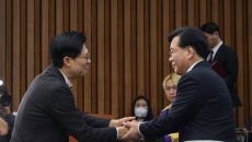 국민의힘 송언석 원내대표(오른쪽)가 3일 오전 서울 여의도 국회에서 열린 원내대책회의에 참석하면서 인재영입위원장으로 임명된 조- 2026-02-03 09:50