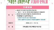 아시아투데이 나현범 기자 = 전남 광양시가 과도한 혼례 문화를 벗어나 건전한 결혼 문화 확산을 위해 작은 결혼식을 치른 신혼부- 2026-02-03 09:41