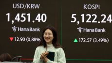 코스피가 폭락 하루만에 3% 상승 출발하며 5000선을 재탈환한 3일 서울 중구 하나은행 본점 딜링룸에서 직원이 증시와 환율- 2026-02-03 09:28