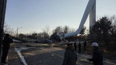 강풍도 아닌데…80m 풍력발전기 반으로 꺾이며 '쿵' 도로 덮쳤다