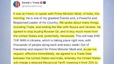 트럼프 "인도, 러 원유 구매 중단키로...상호관세 18%로 인하"
