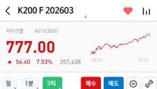 코스피 200지수 선물옵션 지수가 갑자기 올랐다 가라앉았다. 3일 3시 31분에 코스피 200 선물 지수는 817.25포인트를- 2026-02-03 17:13