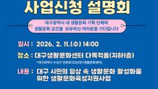 [박용 기자] [포인트경제] (재)대구문화예술진흥원(이하 진흥원)은 오는 13일부터 3월 6일까지 생활문화 활성화를 위한 생활- 2026-02-03 16:30