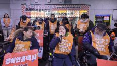 '탑승시위 유보' 전장연 지하철행동…"장애인 이동권 보장해야"