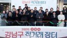 [이데일리 김태형 기자] 조성명(앞줄 가운데) 강남구청장이 3일 강남구 설맞이 직거래장터 개장식에 참석하고 있다. 강남구청 주- 2026-02-03 14:49