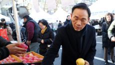 [이데일리 김태형 기자] 조성명(가운데) 강남구청장이 3일 강남구 설맞이 직거래장터를 살펴보고 물건을 구매하고 있다. 강남구청- 2026-02-03 14:47