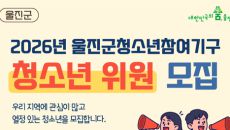 울진군이 청소년들의 권익 증진과 정책 참여 확대를 위해 청소년참여기구 위원을 오는 3월 13일까지 공개 모집한다. 청소년 스스- 2026-02-03 14:21