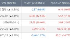 [서울=뉴스핌] 로보뉴스 = 03일 13시 30분 현재 샘씨엔에스(252990)는 전일 대비 11.51% (현재가 11,240- 2026-02-03 13:31