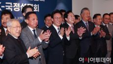 [포토]기업인들과 기념촬영하는 김민석 총리