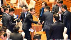 [포토] 의원들과 인사하는 한병도 민주당 원내대표