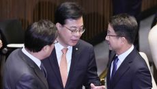 [서울=뉴스핌] 윤창빈 기자 = 김민석 국무총리, 김정관 산업통상부 장관이 3일 서울 여의도 국회에서 열린 본회의에서 대화를- 2026-02-03 11:06
