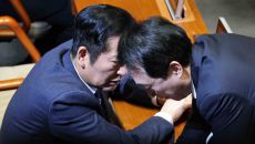 [서울=뉴스핌] 윤창빈 기자 = 정청래 더불어민주당 대표, 박수현 수석대변인이 3일 서울 여의도 국회에서 열린 본회의에서 대화- 2026-02-03 11:05