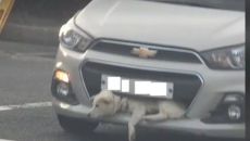차량 앞 범퍼에 끼인 '백구' 사진, 온라인서 논란…"학대 vs 사고"(종합)