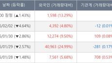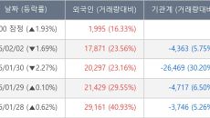 [장중수급포착] 성신양회우, 외국인 8일 연속 순매수행진... 주가 +1.33%