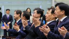 3일 서울 여의도 한국거래소에서 열린 '코스피 5000 앤 비욘드 세미나'에 참석한 주요 내빈들이 박수 치고 있다. 오른쪽부터- 2026-02-03 10:17