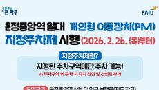 파주시가 운정중앙역 일대 '개인형 이동장치(PM) 지정주차제'를 26일부터 본격 시행한다고 24일 밝혔다. '개인형 이동장치- 2026-02-24 10:24