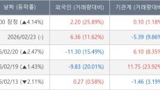 [CBC뉴스] 뉴로메카가 3거래일 연속 하락 흐름을 마치고 24일 반등에 성공했다. 뉴로메카는 이날 오전 현재 4.86% 상승- 2026-02-24 10:23