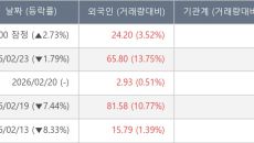 [서울=뉴스핌] 로보뉴스 = 24일 10시 15분 현재 오가닉티코스메틱(900300)은 전일 대비 2.73% (현재가 113원- 2026-02-24 10:18