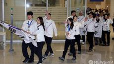'금3 목표 달성' 동계올림픽 한국 선수단, 수백 명 환영 속에 '금의환향'(종합)