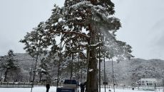 [보은=뉴시스]연종영 기자 = 대설주의보가 내려진 24일 충북 보은군이 천연기념물 103호 정이품송 나뭇가지에 쌓인 눈을 털어- 2026-02-24 17:36