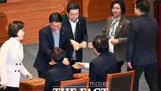 [더팩트ㅣ국회=배정한 기자] 김병기 무소속 의원(가운데)이 24일 오후 서울 여의도 국회에서 열린 제432회국회(임시회) 8차- 14시간전