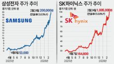 20만원, 100만5000원. 24일 삼성전자와 SK하이닉스가 '20만전자'(주가 20만원)와 '100만닉스'(주가 100만원- 2026-02-24 16:20