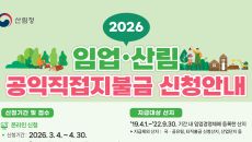 임업인의 소득 안정을 지원하는 임업·산림 공익직접지불금(임업직불금) 신청이 다음 달부터 시작된다. 올해는 등록정보 변경이 없는- 2026-02-24 16:20
