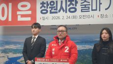 [창원=뉴시스]강경국 기자 = 경남 창원시장 선거에 출마한 예비후보들이 24일 나란히 기자회견을 갖고 출마 선언을 하거나 정책- 2026-02-24 15:50