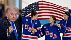 미국 여자 아이스하키 대표팀이 2026 밀라노·코르티나담페초 동계 올림픽에서 캐나다를 꺾고 금메달을 획득한 가운데 도널드 트럼- 2026-02-24 15:43