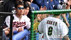 24일 일본 오키나와 가데나 구장에서 열린 야구 대표팀과 KIA 타이거즈의 평가전. 안현민, 김도영이 득점한 노시환을 반기고- 9시간전