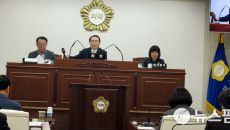 [영덕=뉴스핌] 남효선 기자 = 24일 오전 경북 영덕군의회 본회의장에서 재개된 '제320회 임시회'에서 김성호 군의장이 '신- 2026-02-24 12:32