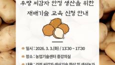 내달 3일 무병 씨감자 추백 안정 생산 체계 강화 [더팩트ㅣ당진=천기영 기자] 충남 당진시는 내달 3일 당진시농업기술센터 중강- 2026-02-24 12:27