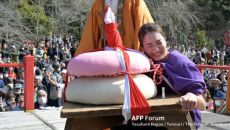 교토 다이고지 절, 전통 떡 들어 올리기로 신의 기운 기원
