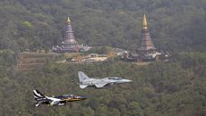 로얄 파고다 사원 인근 날아오른 블랙이글스 - 태국 공군