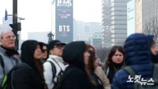 16일 서울 광화문광장에서 바라본 주변 빌딩들에 방탄소년단(BTS)의 컴백 라이브 공연 관련 광고가 나오고 있다. 약 3년 9- 2026-03-16 00:02