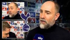 일촉즉발, “질문 좀 그만해라” 인터뷰 중 ‘긁힌’ 토트넘 투도르 감독, 기자 어깨에 손 올리고 ‘신경전’