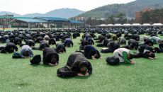 16日,在韩国庆尚南道昌原市镇海区海军教育司令部,第723期海军新兵向亲人行大礼告别。 李雅贤 记者 yaxian@ajunews.com- 2026-03-16 17:37