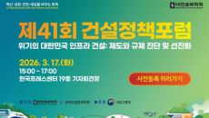 대한토목학회가 오는 17일 서울 중구 한국프레스센터에서 제41회 건설정책포럼을 개최한다고 16일 밝혔다. 이번 포럼은 한국건설- 13분전