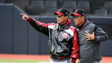 16일 수원KT위즈파크에서 열린 LG와 KT의 시범경기. LG가 5대3으로 승리했다. 염경엽 감독이 김정준 수석코치와 이야기를- 2026-03-16 16:08