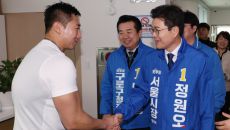 헬스트레이너와 인사 나누는 정원오 예비후보