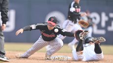KT 허경민이 16일 수원 KT위즈파크에서 열린 2026 KBO리그 LG와 시범경기 5회말 2사 이강민 타석 때 2루 도루를- 10시간전