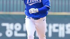 [사진]선제 솔로포 류지혁, '왜 넘어가?'