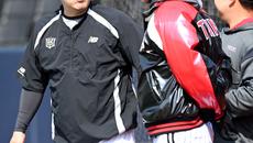 [포토] KT 유니폼 입은 김현수, 모창민 코치와 인사