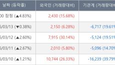 [장중수급포착] 현대홈쇼핑, 외국인 9일 연속 순매수행진... 주가 +4.83%