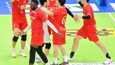 선수들과 함께 기뻐하는 권영민 감독[포토]