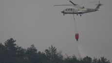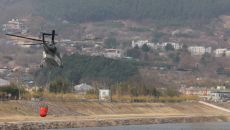 경남 산청군 대형 산불이 8일째 이어진 가운데 산림 당국이 지상에 방화선을 구축하고 외곽에서 물을 뿌리는 동시에 공중에서 물폭- 2025-03-28 13:12