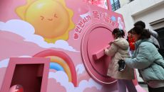 28일 인천 연수구 한 쇼핑몰에 설치된 6m 초대형 뽑기 기계인 ‘2026년 행복 예보기’에서 시민들이 행복 예보 카드가 들어- 2025-12-28 23:16