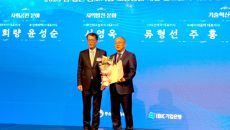 레이저옵텍 주홍 회장(오른쪽)이 '2025 참 좋은 중소기업·소상공인 대상' 수상 후 기념촬영을 하고 있다. [사진=레이저옵텍- 11시간전