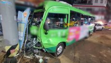 부산서 마을버스가 승용차·신호등 충돌…6명 중경상